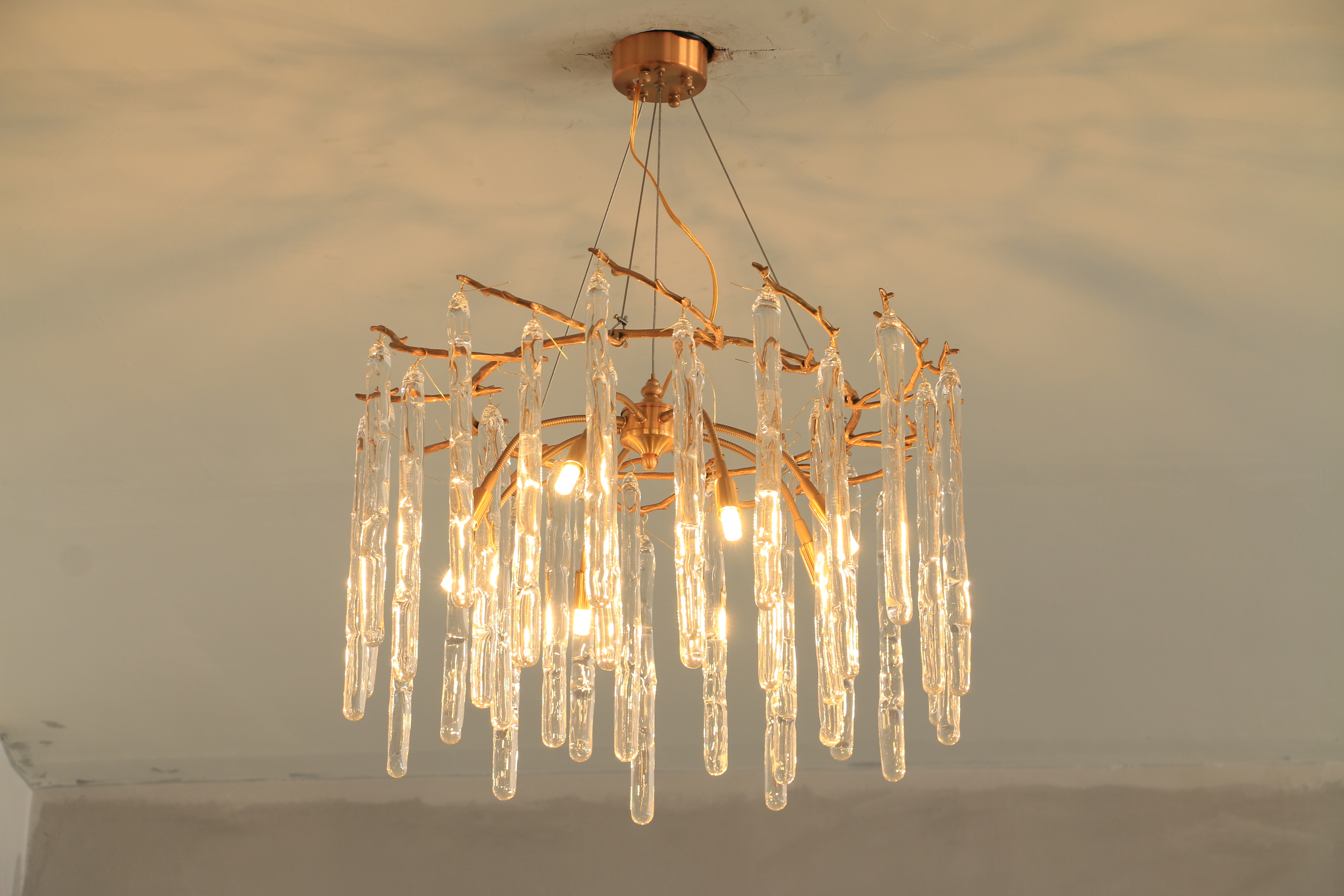 水滴型のガラスロッドは、精巧な職人技で作られており、光を均一に、柔らかく、まぶしさなく透過します。